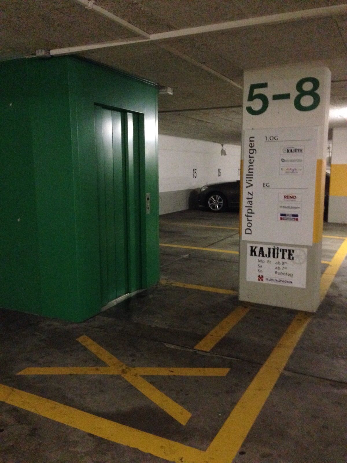 Benutzen Sie das Parkhaus vom Coop, dann mit dem Grünen Lift in den 1. Stock.